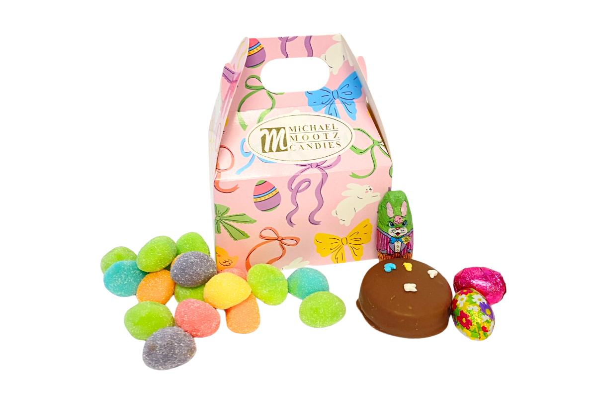 These Easter Treat Boxes are a delicious sampling of sweets! It is sure to put a smile on anyone’s face! Includes a single Milk Chocolate Oreo, 2.5oz. bag of Easter Gummies, 1 Milk Chocolate Bunny Foil, 1 Milk Chocolate Chick Foil and 1 Milk Chocolate Egg Foil in an adorable Easter Box.